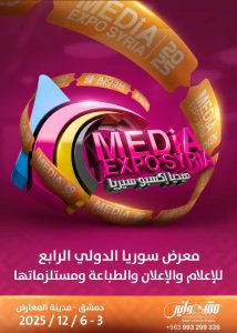 تستعد دمشق لاستقبال النسخة الرابعة من معرض سوريا الدولي للإعلام والإعلان والطباعة ومستلزماتها (ميديا إكسبو سيريا)، خلال الفترة من 3 إلى 6 كانون الأول 2025، وذلك تحت رعاية وزارة الاقتصاد والصناعة في الجمهورية العربية السورية وعلى أرض مدينة المعارض بدمشق.